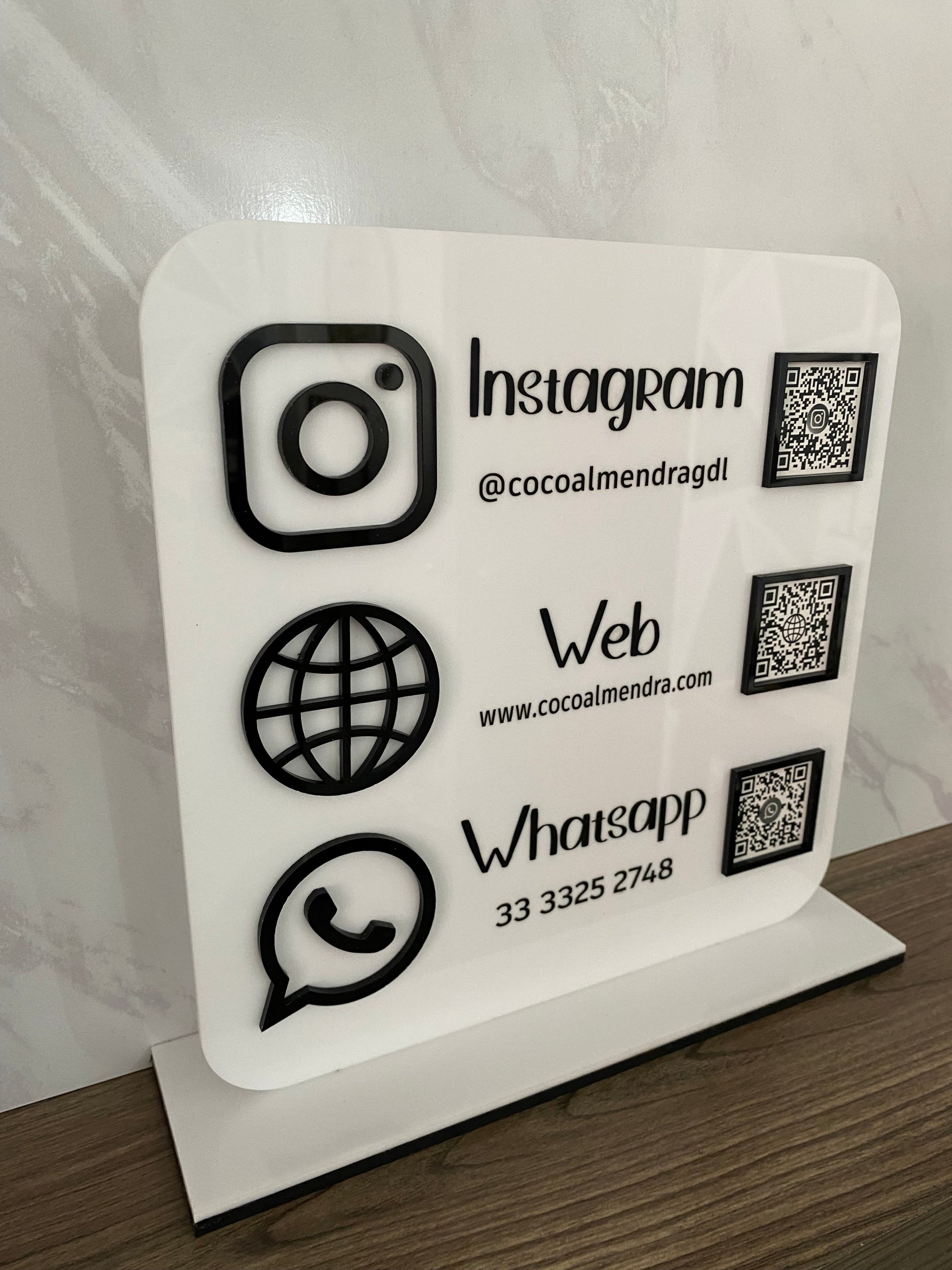 - Placa de acrílico con 3 redes sociales a elegir